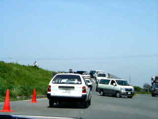 | ご覧の通り、いくつもある駐車場はすべて満車で警備員によって入場制限が行われていた。 「時間をずらしてから来てください」と呼びかけていた。 |