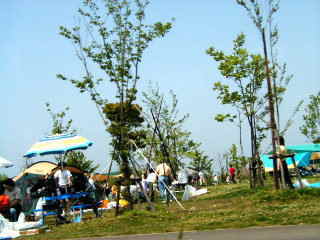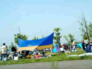 | 芝生上には、なにやらテントのようなものが多数。 ここはキャンプ場か? とにかくすごい混雑でした。GWだからかな。 釣りをすることもできずに、オフ会の集合場所を二度も通りすぎて帰ってきました。 参加者には、不審な動きのカリーナがわかったようです(^^) 今度は、カリーナのオフライン・ミーティングをここで開こうかな〜 |